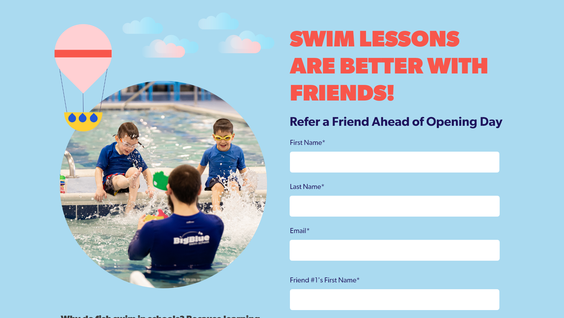 Big Blue Swim School Landing Page